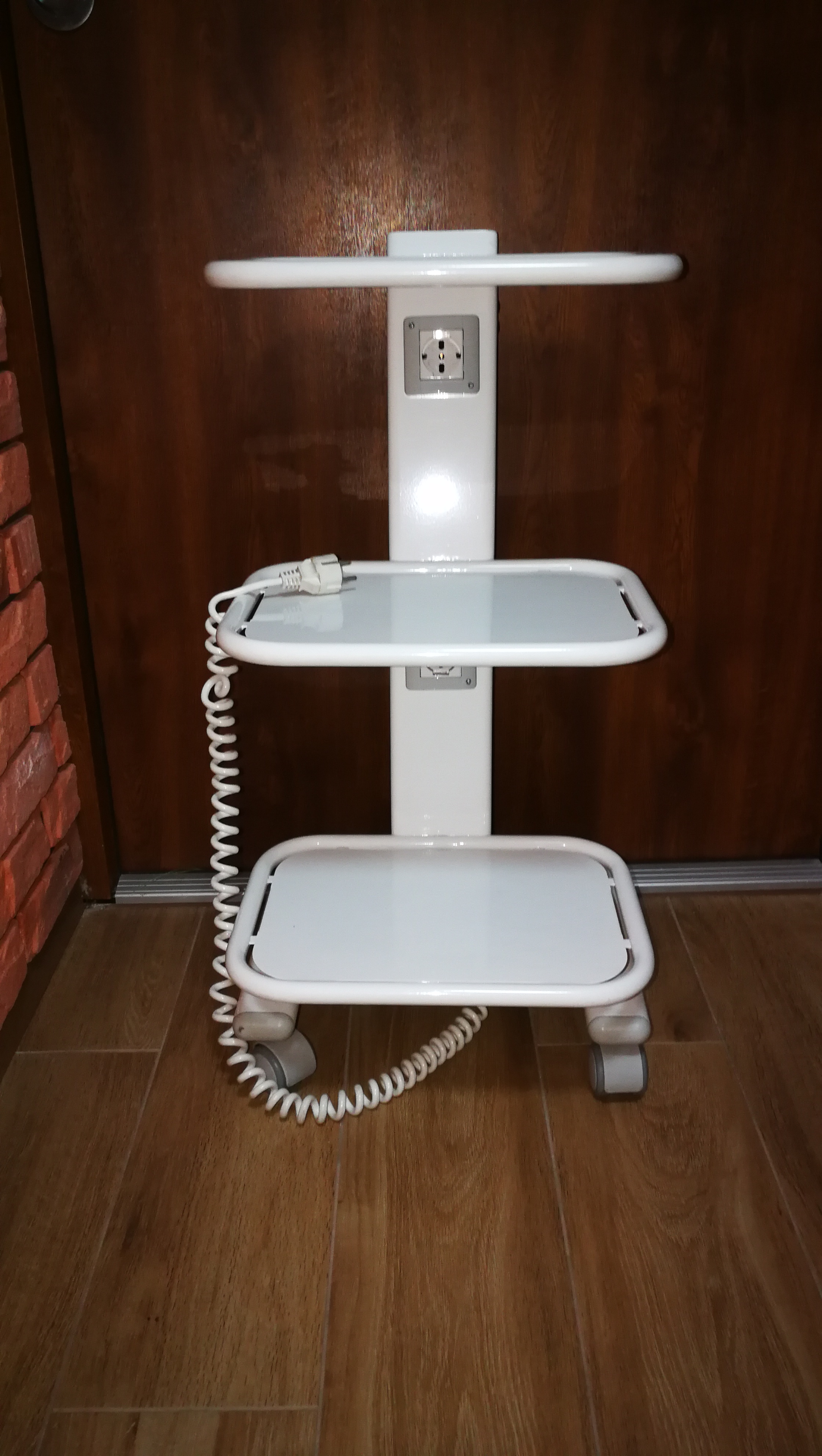 Sprzedam asystor metalowy jezdny z trzema półkami i dwoma gniazdkami na urządzenia medyczne